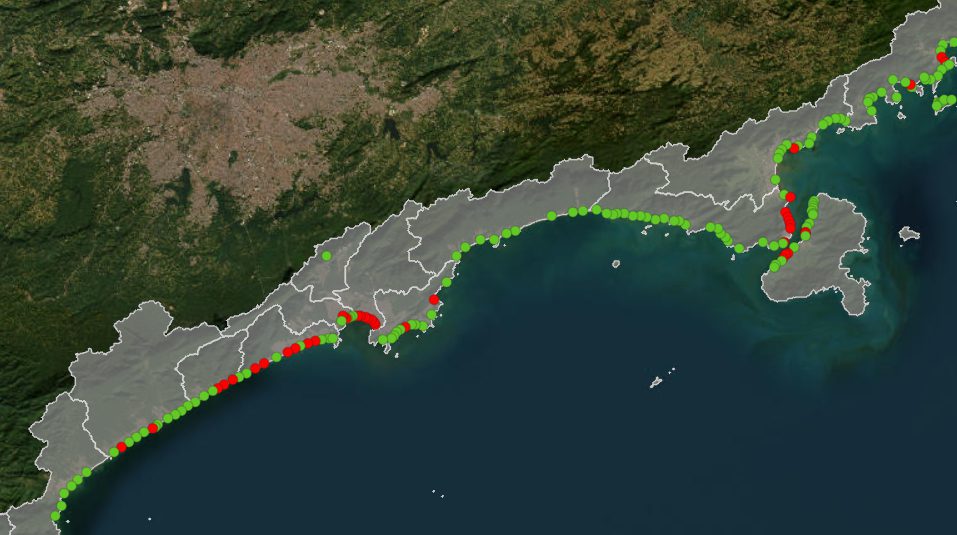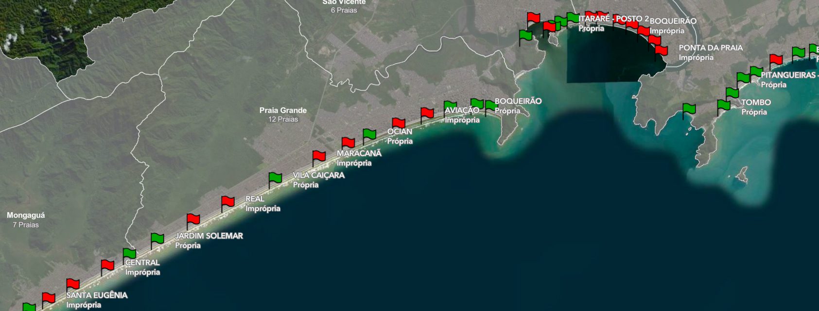 As cidades com maior número de praias impróprias, com bandeira vermelha entre o dia 2 e esta quarta-feira (8/1) são Santos (7), São Sebastião (7) e Praia Grande (6).